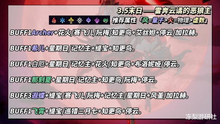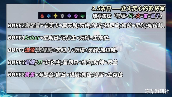 结合敌方弱点,综合分析下来,本期优势角色如下: