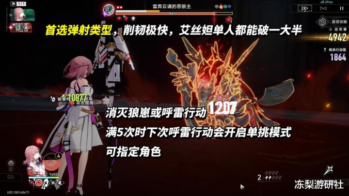 个人建议,削韧>伤害,尤其是技能高频弹射型角色非常克制末日呼雷,可快速削减其韧性条,例如:白厄、那刻夏、艾丝妲。