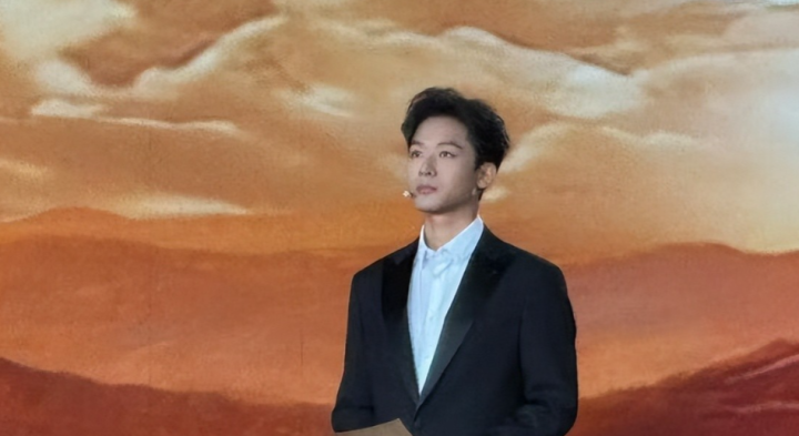 今年10月,31岁的他还一身正装,出席了央视总台的重点项目推介会,气场完全就是扛剧男主的架势。