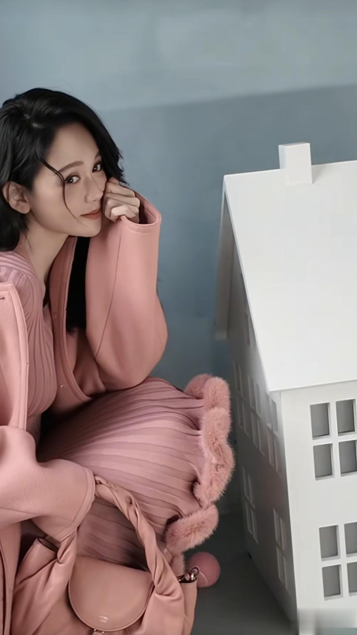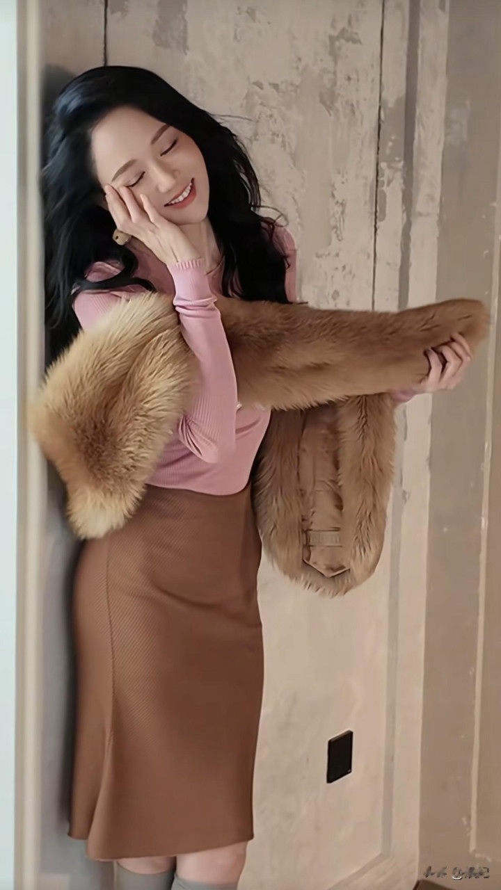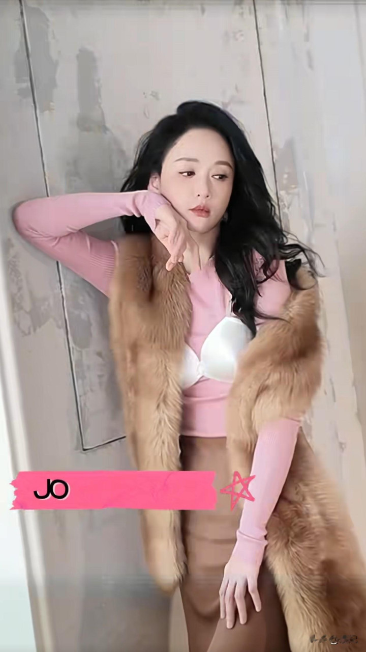46岁陈乔恩拍杂志! 粉色长T+皮草围脖+半身裙, 内衣外穿好大胆
