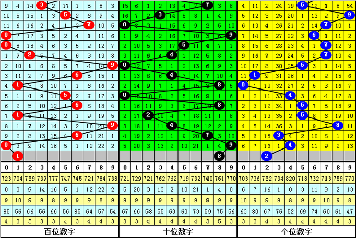 百位分析:百位最近9期出号:9-6-1-5-6-1-9-6-0,奖号大小比为6:3,奇偶比为5:4,012路比为6:2:1,本期百位参考号码139。